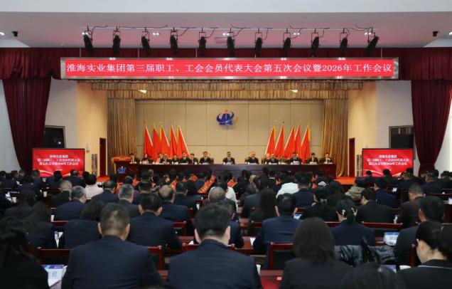 1月8日,淮海實業(yè)集團(tuán)總部,第三屆職工、工會會員代表大會第五次會議暨2026年工作會議如期舉行。全體代表齊聚一堂,回顧極具挑戰(zhàn)的2025年,共同謀劃2026年發(fā)展藍(lán)圖。