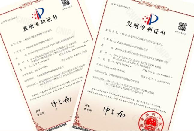 日前,中勘科技自主研發(fā)的《一種變形高敏感建筑物下注漿裝置》和《一種大口徑透巷鉆孔階梯式鉆進(jìn)風(fēng)力鉆進(jìn)工藝》兩項(xiàng)創(chuàng)新成果,正式獲得國家發(fā)明專利授權(quán)。這是公司堅(jiān)持“科技引領(lǐng)發(fā)展”戰(zhàn)略、持續(xù)深耕技術(shù)研發(fā)取得的又一重要突破,標(biāo)志著相關(guān)科技成果已成功實(shí)現(xiàn)向現(xiàn)實(shí)生產(chǎn)力的有效轉(zhuǎn)化。
