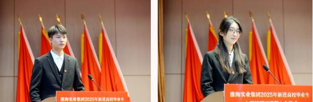 榜樣是前行最好的指引。已入職高校畢業生代表、來自相山水泥的黃海濤,分享了從“職場新人”到“業務骨干”的成長歷程,為新同事們提供了借鑒參考。“我們定將扎根淮海、砥礪奮斗,不負時代,不負韶華!”新進高校畢業生代表、中勘科技張子晴的發言鏗鏘有力,道出了全體新員工扎根企業、建功立業的共同決心。