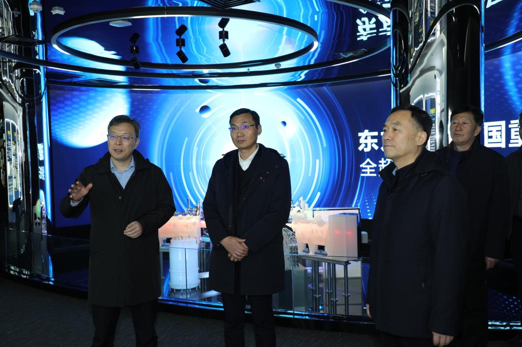 王振江一行先后考察實驗裝置車間、等離子體所展廳,等離子體所副所長、研究員陸坤介紹了有關核心技術、產業前景情況。雙方圍繞“精密鍛件、激光熔覆、起吊設備”等方面,展開深入交流、共謀合作發展。