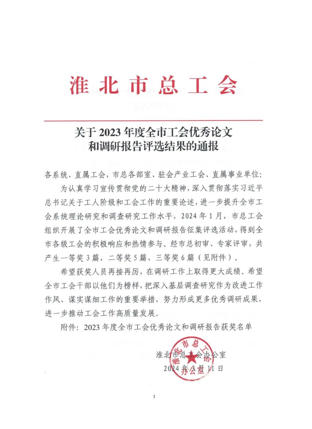 2023年,集團公司工會在集團公司黨委的堅強領導和上級工會的大力支持下,堅持以習近平新時代中國特色社會主義思想為指導,以“夯基固本提升”為主線,團結動員廣大職工攻堅克難,踔厲奮發,圍繞“政治引領、中心工作、維權服務、職工至上、自身建設”五個聚焦,打造“五型工會”取得新成效,為集團公司改革發展穩定做出了積極貢獻。此次獲獎,是集團公司工會首次獲評“五型工會”勞動競賽一等獎。