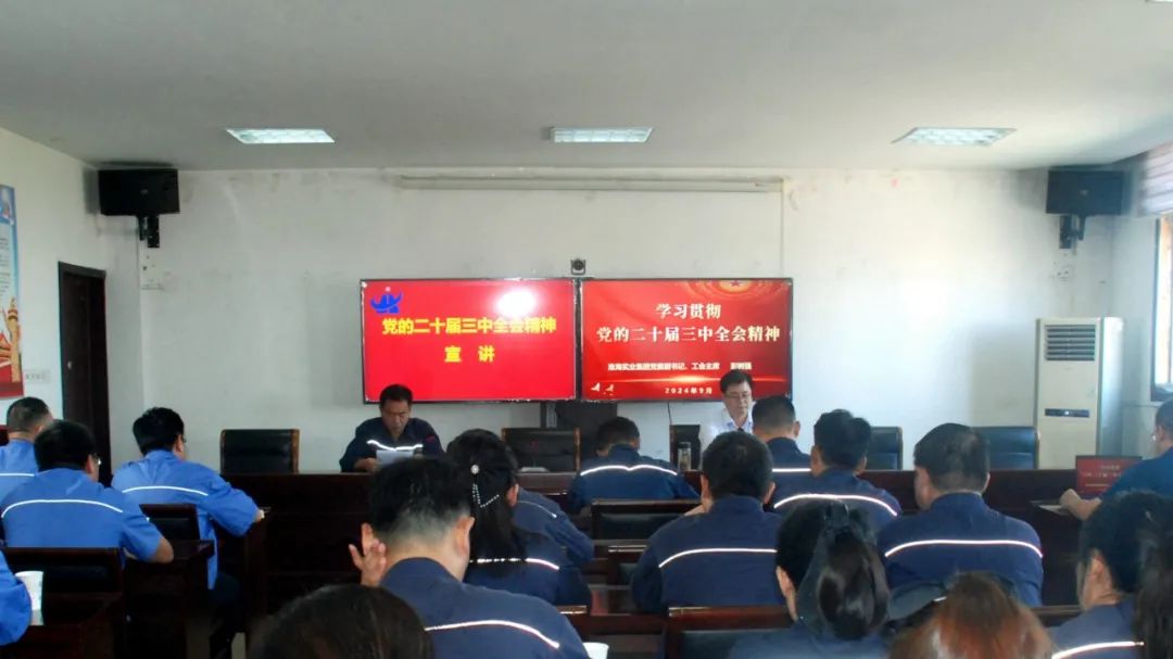 為深入學(xué)習(xí)貫徹黨的二十屆三中全會精神,引導(dǎo)廣大黨員干部內(nèi)化于心、外化于行,9月25日,淮海實(shí)業(yè)集團(tuán)黨委副書記、工會主席彭樹強(qiáng)赴包保聯(lián)系基層單位,宣講全會精神。仙珠公司、騰嶺公司領(lǐng)導(dǎo)班子、各廠點(diǎn)黨支部書記、青年代表等35人參會。